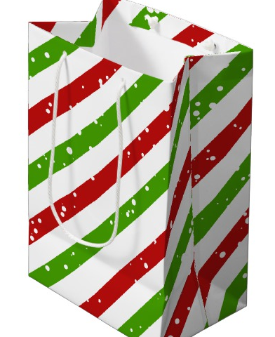 Green White Red Diagonal Snowy Stripes Medium Gift Bag