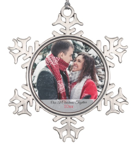 Our 1st Christmas Together Photo Snowflake Pewter Christmas Ornament